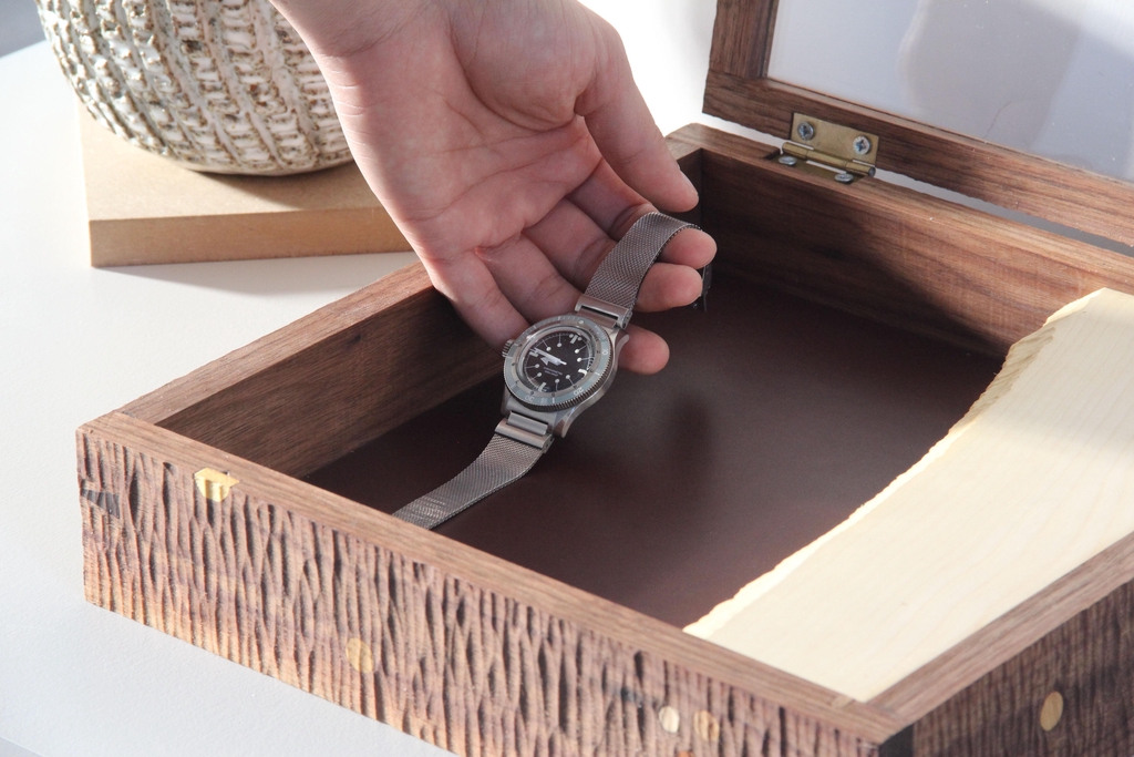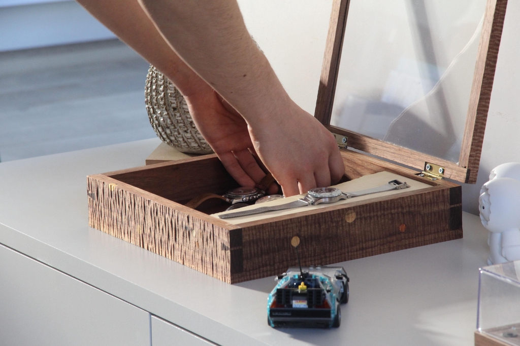 J'ai récemment réalisé cette boîte à montres en cadeau pour mon frère qui est, comme vous le devinez, friand de montres.