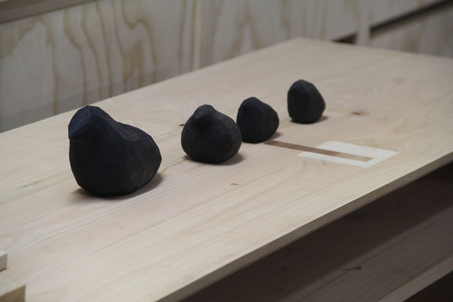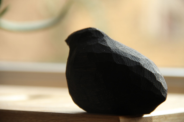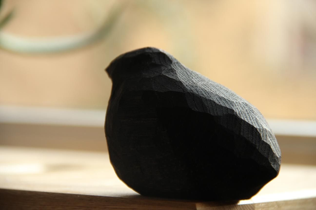 Petits oiseaux nommés Alf, Alfred et Alfredo (taille du plus petit au plus grand). Ebonisé pour obtenir cette couleur noir et laissé brut de sculptage. Ils sont ensuite protégés avec une huile.